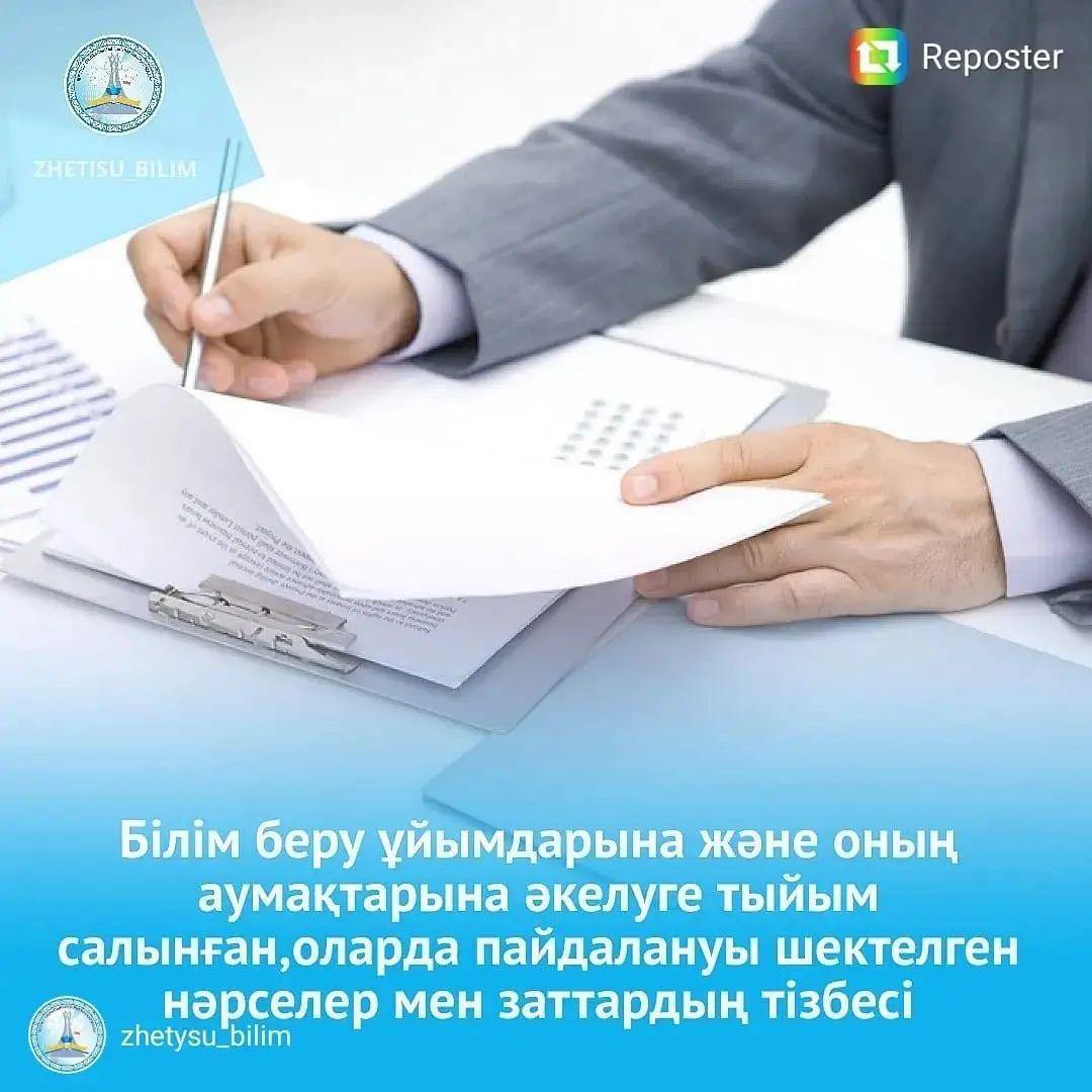 Білім беру ұйымдарына және олардың аумақтарына әкелуге тыйым салынған, оларда пайдаланылуы шектелген нәрселер мен заттардың тізбесі
