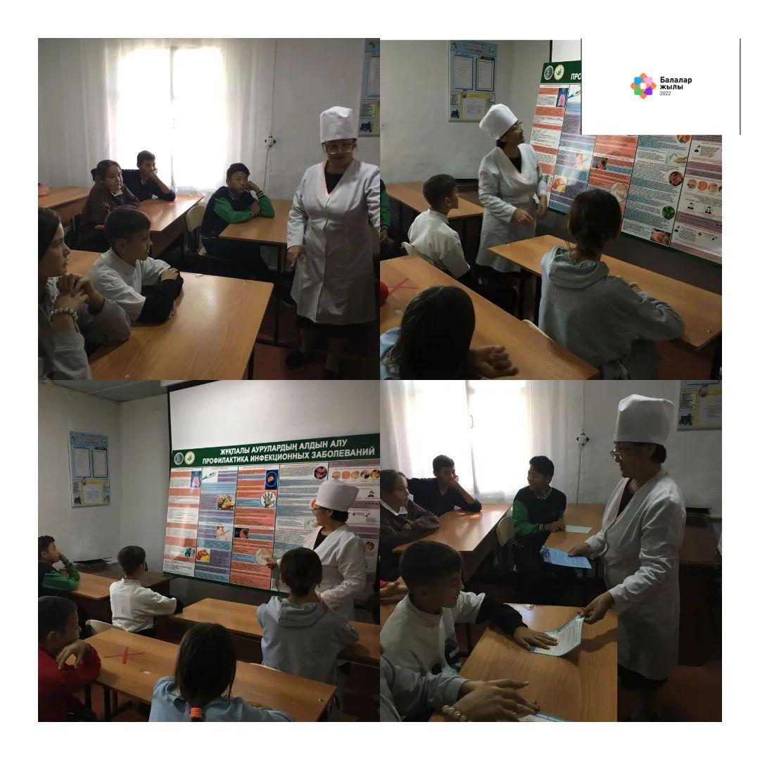 2022 жылдың 16 қыркүйек күні мектеп медбикесі А.Е.Сейтова 6-9 сынып оқушыларымен нашақорлықтың алдын алу бойынша түсіндірме жұмыстарын жүргізді.